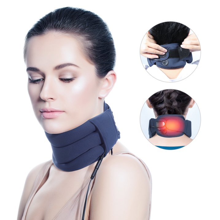 This neck brace is a 3-in-1 Cervical Neck Traction Device that provides neck compression, neck support, and heat therapy to help relieve neck pain and spine pressure.